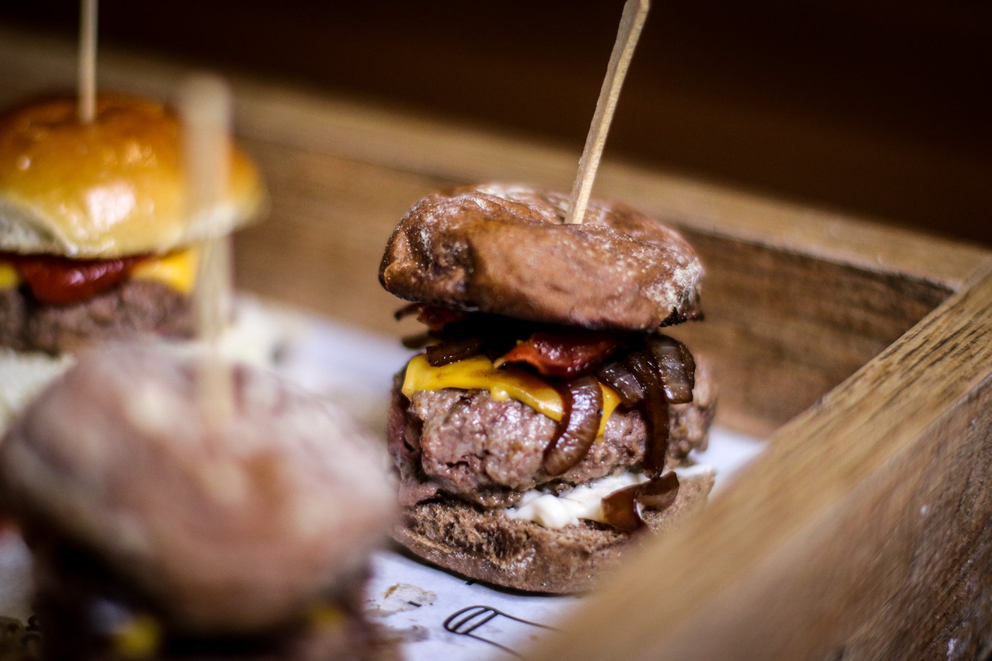 Pão preto, cebola caramelizada e cream cheddar (10 un)